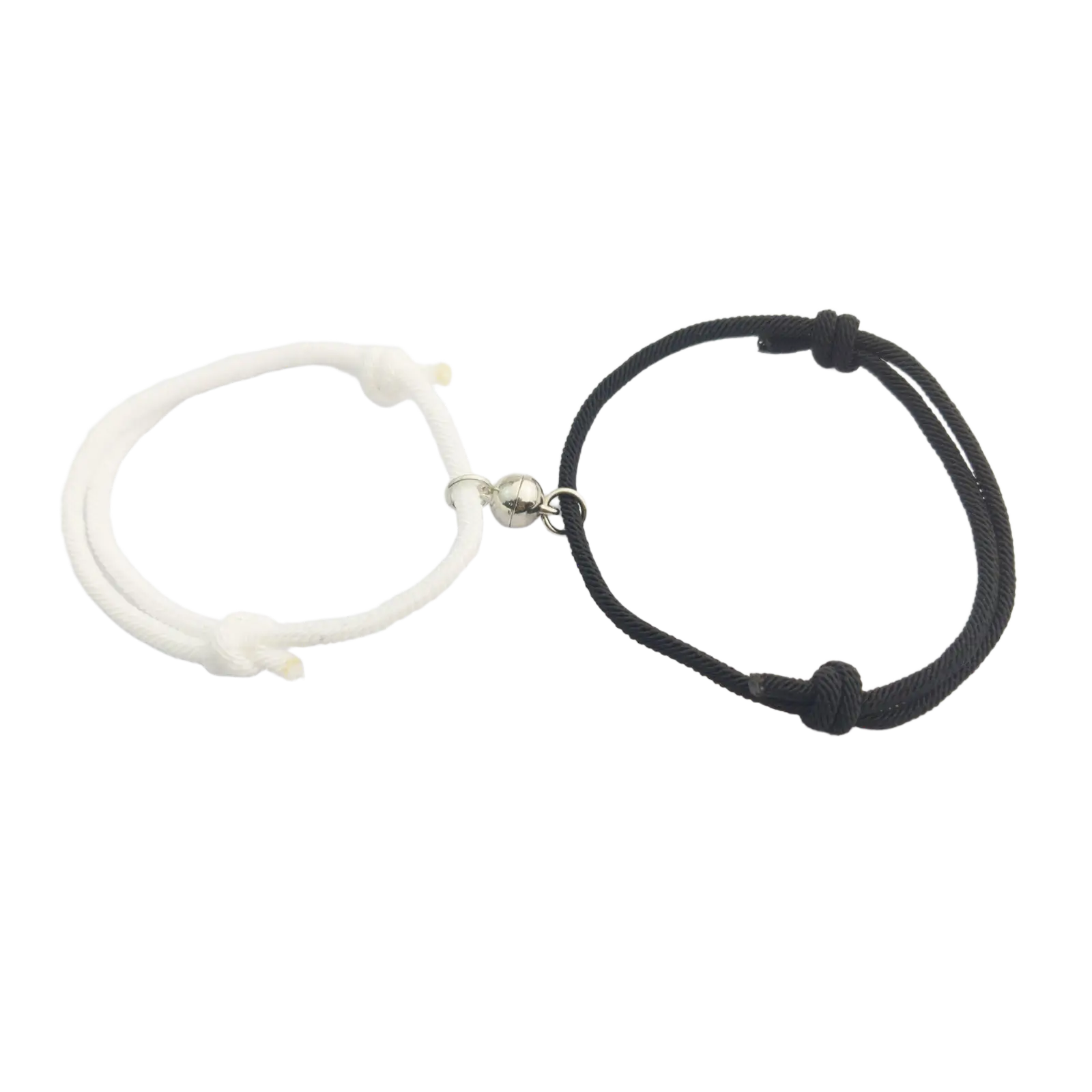 Composés de cordons ajustables noir et blanc, chacun est sublimé par une perle centrale en acier inoxydable, symbole du lien invisible qui relie deux âmes. Minimalistes et élégants, ces bracelets se portent au quotidien comme un rappel discret d’amour, d’amitié ou de fraternité. Un bijou raffiné, à offrir ou à partager.