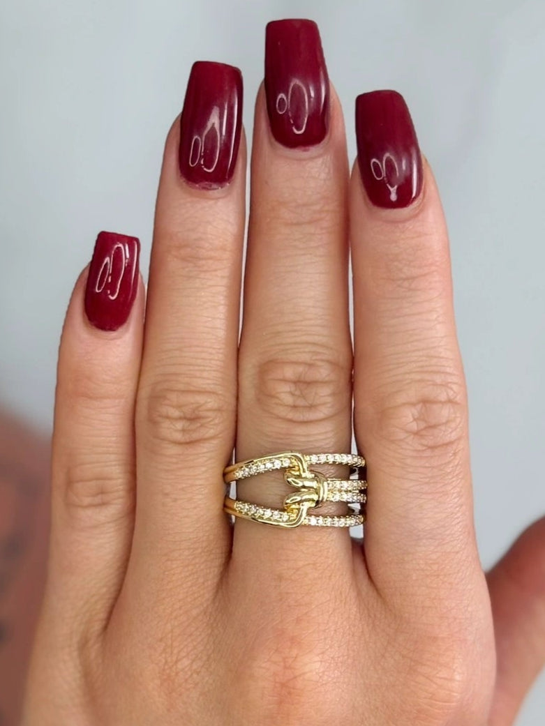 Cette bague raffinée associe des maillons ouverts à des strass scintillants pour une allure à la fois structurée et lumineuse. Chic et moderne, elle se porte seule ou en accumulation pour sublimer votre style avec éclat.