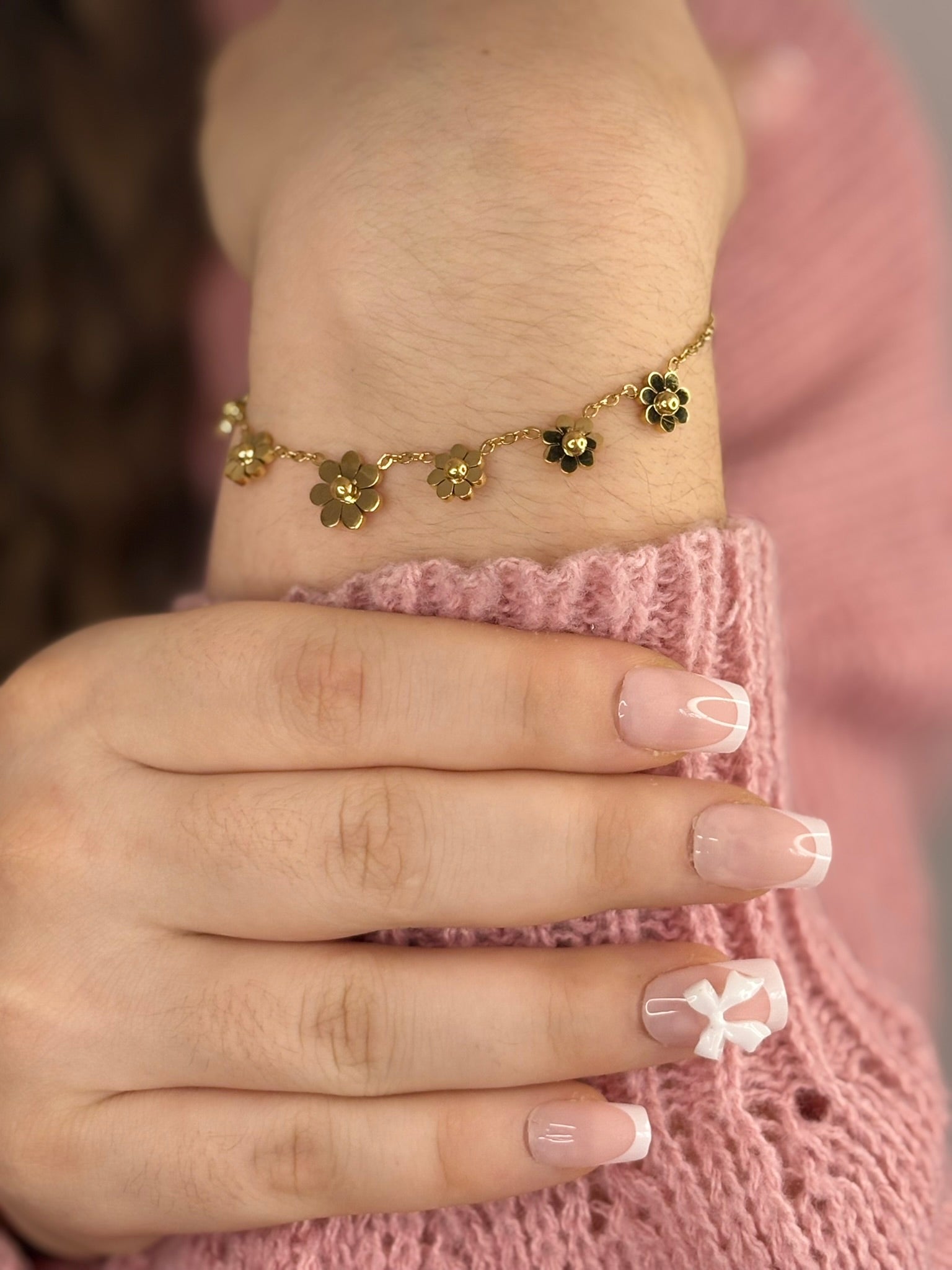 Le bracelet Daisy Gold séduit par son esprit frais et printanier. Composé de petites fleurs dorées alignées, il illumine le poignet avec légèreté et gaieté. Son design joyeux en fait un accessoire parfait pour apporter une touche ensoleillée à vos tenues du quotidien.