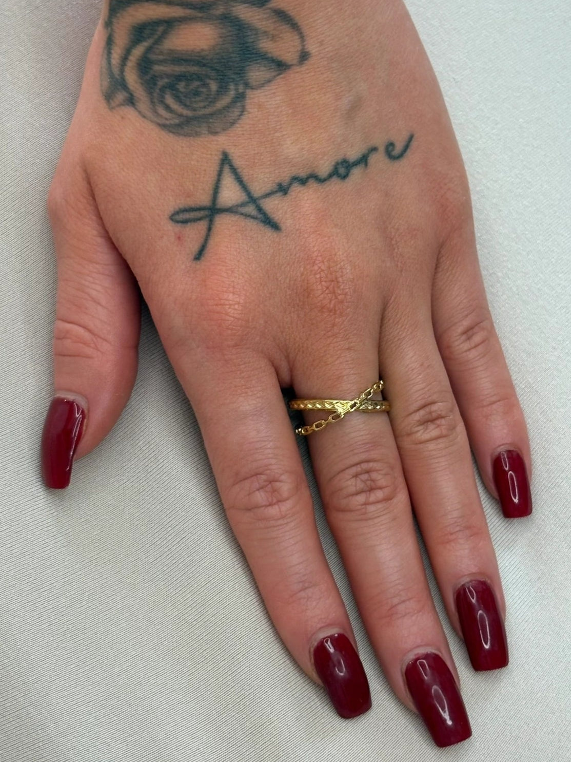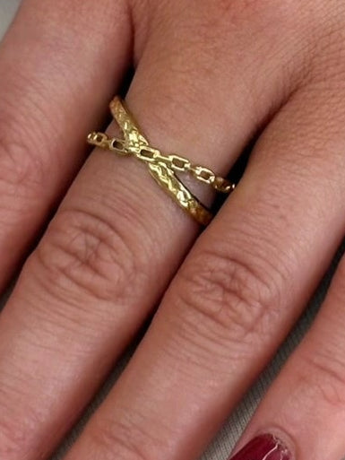 La bague Duo Structure joue sur les contrastes : une demi-chaîne classique et une demi-bande texturée. Un modèle audacieux et moderne qui affirme son style, idéal pour celles qui aiment les bijoux à forte personnalité.