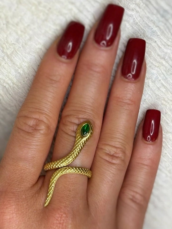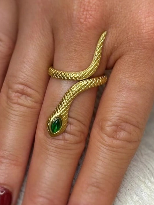 La Bague Émeraude séduit par son design audacieux en forme de serpent, symbole de transformation et de renouveau. Sa tête est ornée d’une pierre verte brillante qui évoque l’intensité de l’émeraude. Un bijou fort et élégant, parfait pour affirmer sa personnalité avec style.