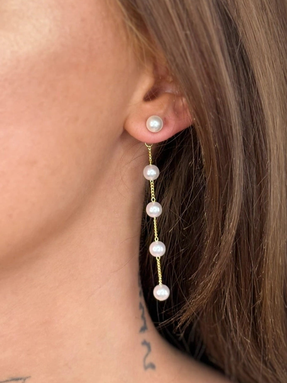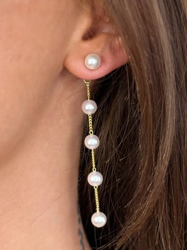 Un design raffiné qui mêle finesse et éclat : ces boucles d’oreilles pendantes dorées sont sublimées par de délicates perles blanches alignées sur une fine chaîne. Élégantes et féminines, elles apportent une touche lumineuse à vos tenues, qu’il s’agisse d’un look quotidien sophistiqué ou d’une allure de soirée chic.