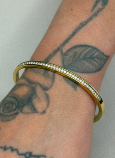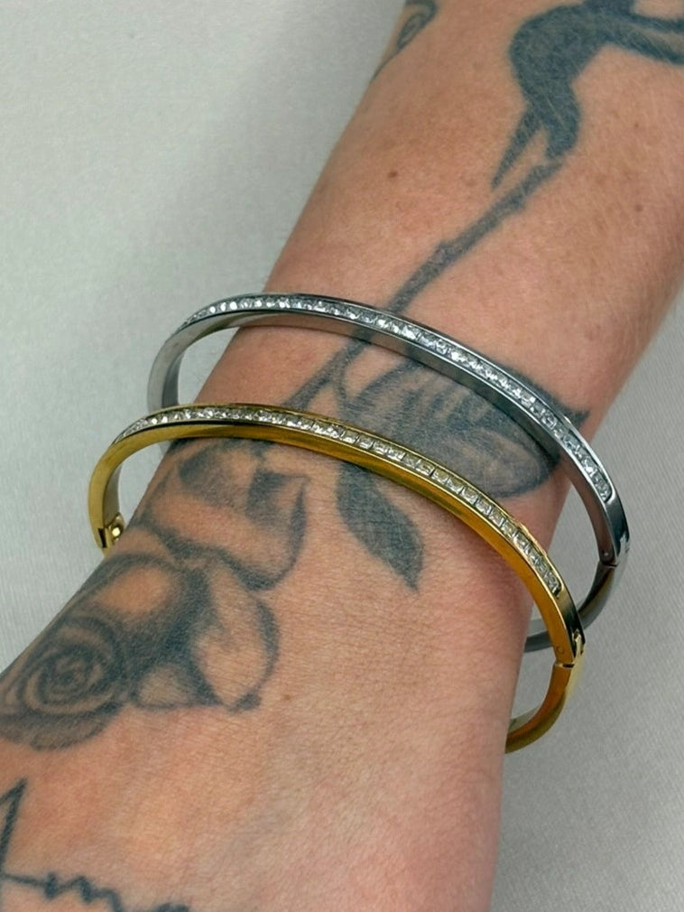 Intemporel et lumineux, le jonc Sélène incarne l’élégance moderne. Sa silhouette épurée en acier inoxydable est sublimée par une rangée d’oxydes de zirconium qui captent la lumière à chaque mouvement. Disponible en trois finitions — argent, or et or rose — il se porte aussi bien seul qu’en accumulation pour un effet chic et affirmé. Une pièce incontournable, raffinée et polyvalente, qui accompagne toutes vos occasions.