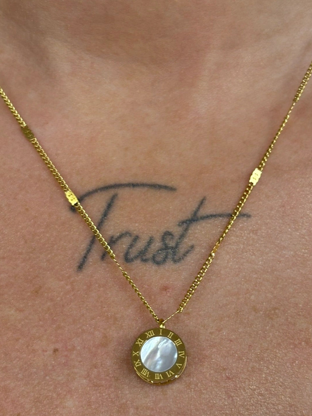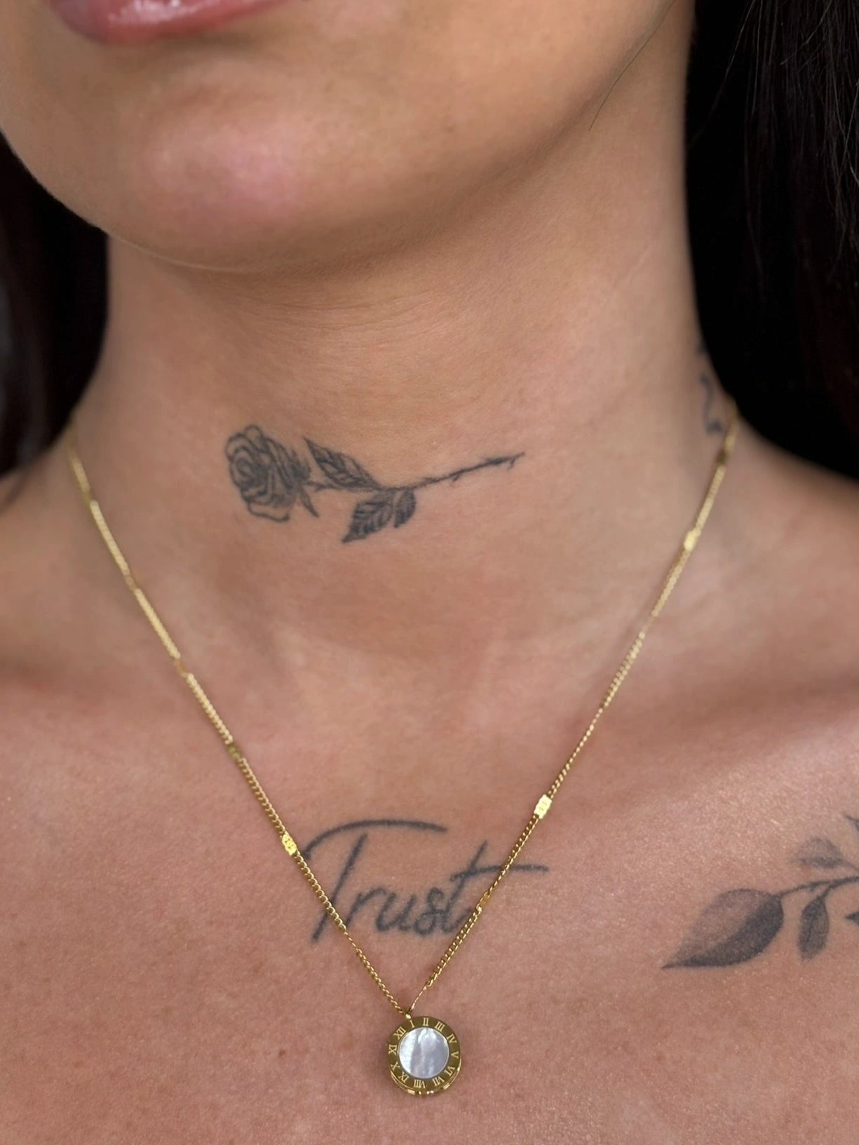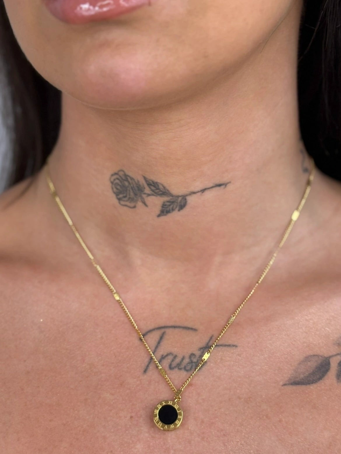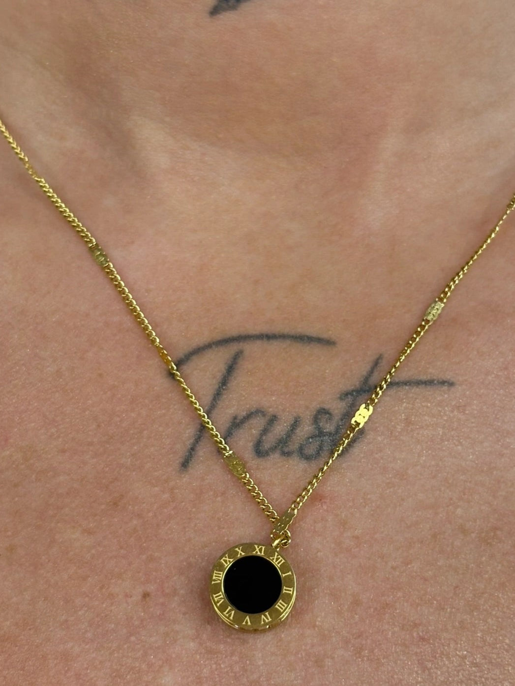 Le collier "Solaire" séduit par son pendentif rond noir rehaussé de détails dorés, évoquant la lumière et la chaleur du soleil. Son design réversible, avec une face en résine noire et l'autre en blanc nacré, permet de varier les styles selon l’humeur. Une pièce à la fois chic, élégante et lumineuse, idéale pour une allure solaire et affirmée.